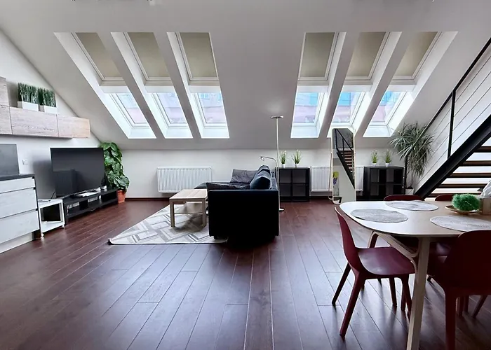 Dieses Apartment verfügt über einen Balkon und eine Sitzecke und Annehmlichkeiten wie eine Klimaanlage. In der Ferienwohnung Loft Jecna 43, Prague steht den Gästen ein Badezimmer mit einem Haartrockner, einem Wäschetrockner und Handtüchern zur Verfügung. Außerdem findet man hier eine getrennte Toilette, eine Dusche und eine Waschmaschine.